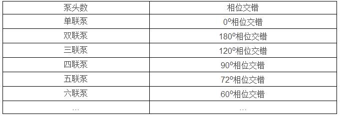 為了減少多聯(lián)泵對系統(tǒng)的沖擊,同時又保證多聯(lián)泵的效果,所以在多聯(lián)泵裝配過程中必須進(jìn)行泵頭之間的相位交錯。具體的錯位要求如下: