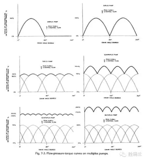 多聯(lián)泵的流量特性與單頭泵的流量特性是密切相關(guān)的。單頭泵的流量特性是非連續(xù)的類似于正弦波的波形。峰值頂點的瞬間流量值是額定流量值的3.14倍。如果在組合多聯(lián)泵時,我們只是簡單地將各個泵頭的排出疊加和吸入疊加,那么,峰值頂點的瞬間流量值會隨泵頭數(shù)量增加而成倍增加,對管線系統(tǒng)的沖擊也是成倍增加。
