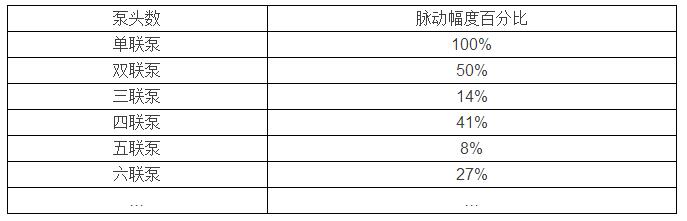 如果仍然以三個泵頭并聯(lián)的計量泵與單頭計量泵比較,三頭泵的脈動可以減低86%?。。?/span>