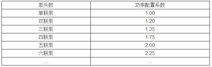 以下是多聯(lián)泵電機配置功率的系數(shù)