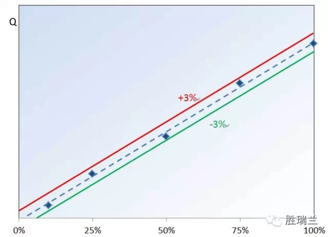 重復(fù)精度(圖3)顯示了當(dāng)輸送過(guò)程的流量頻繁變化時(shí)(同等調(diào)節(jié)量時(shí)的同等流量下)流量的滯變現(xiàn)象。API675標(biāo)準(zhǔn)要求重復(fù)精度要在泵額定流量的±3%范圍內(nèi)。重復(fù)精度對(duì)各種類型的流量調(diào)節(jié)都很重要,即使在不進(jìn)行流量調(diào)節(jié)時(shí)它也同樣重要,例如只用調(diào)節(jié)手柄刻度盤進(jìn)行計(jì)量的場(chǎng)合。