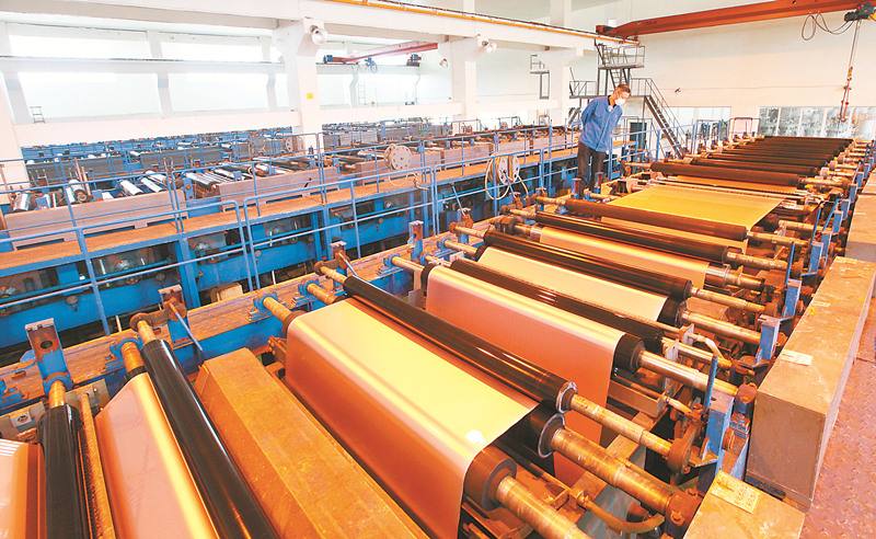 隨著全球鋰電及新能源汽車(chē)的快速發(fā)展,動(dòng)力電池的需求量與日俱增。河南三門(mén)峽靈寶黃金股份公司旗下的靈寶寶鑫電子科技公司作為生產(chǎn)鋰電池負(fù)極材料專(zhuān)用銅箔的國(guó)家重點(diǎn)企業(yè),今年新建年產(chǎn)4萬(wàn)噸動(dòng)力鋰電池負(fù)極專(zhuān)用銅箔的工廠,產(chǎn)量位居國(guó)內(nèi)第二、全球第七。鋰電池負(fù)極專(zhuān)用銅箔是利用電解銅箔技術(shù),將原料銅經(jīng)過(guò)溶解制成硫酸銅電解液,再將硫酸銅電解液通過(guò)直流電沉積制成原箔,然后再對(duì)原箔進(jìn)行耐熱層、防氧化等一系列表面處理,最后生產(chǎn)出6至12微米動(dòng)力鋰電池負(fù)極專(zhuān)用銅箔。